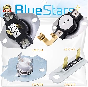3387134 cycling thermostat 3392519 dryer thermal fuse 3977393 thermal cut off switch 3977767 high limit thermostat dryer repair kit by blue stars exact fit for whirlpool kenmore maytag dryers 4 2 out of 5 stars 191.