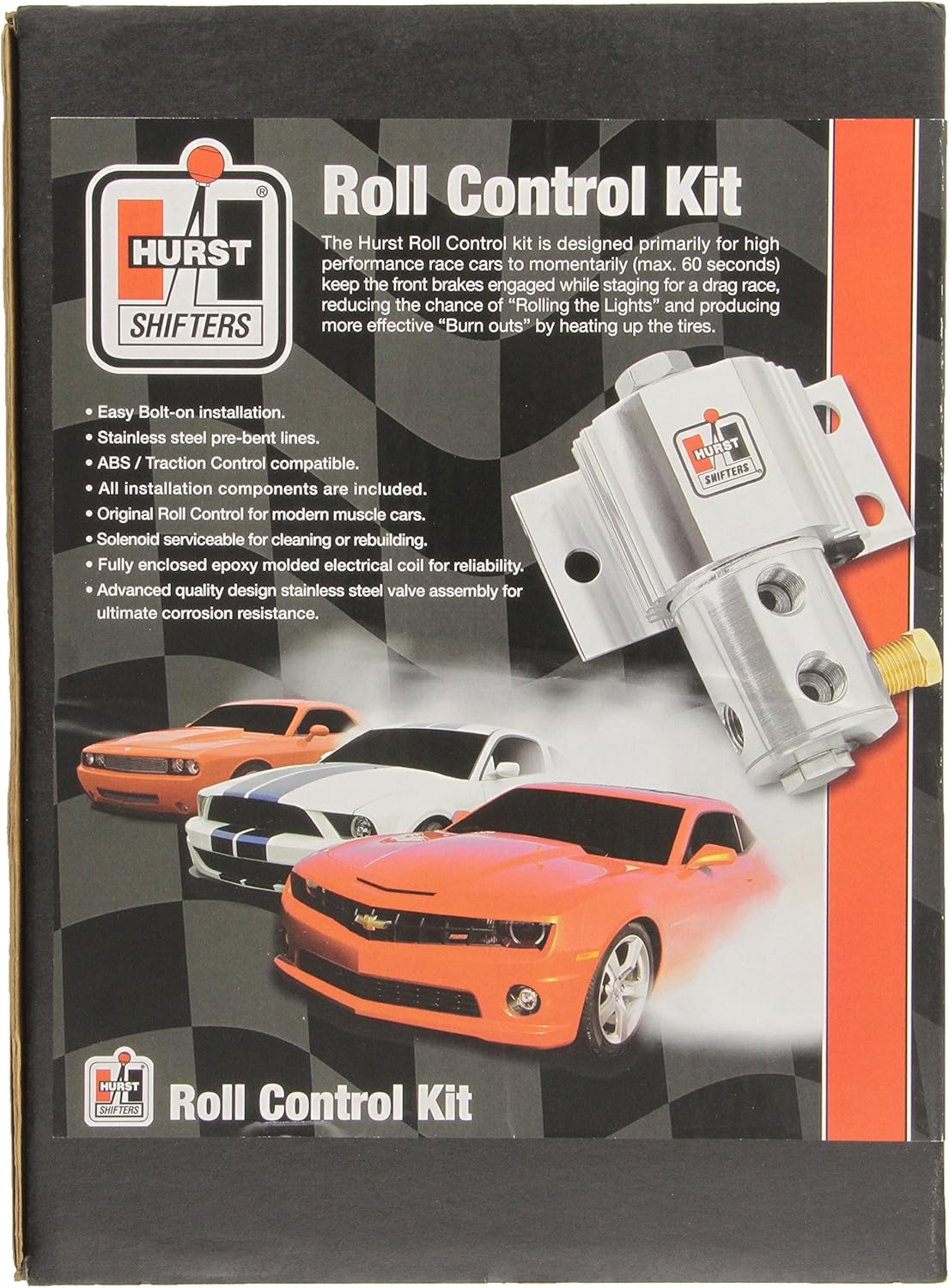 Hurst roll control solenoid is used primarily in drag racing to lock the front wheels to ensure a consistent burnout.