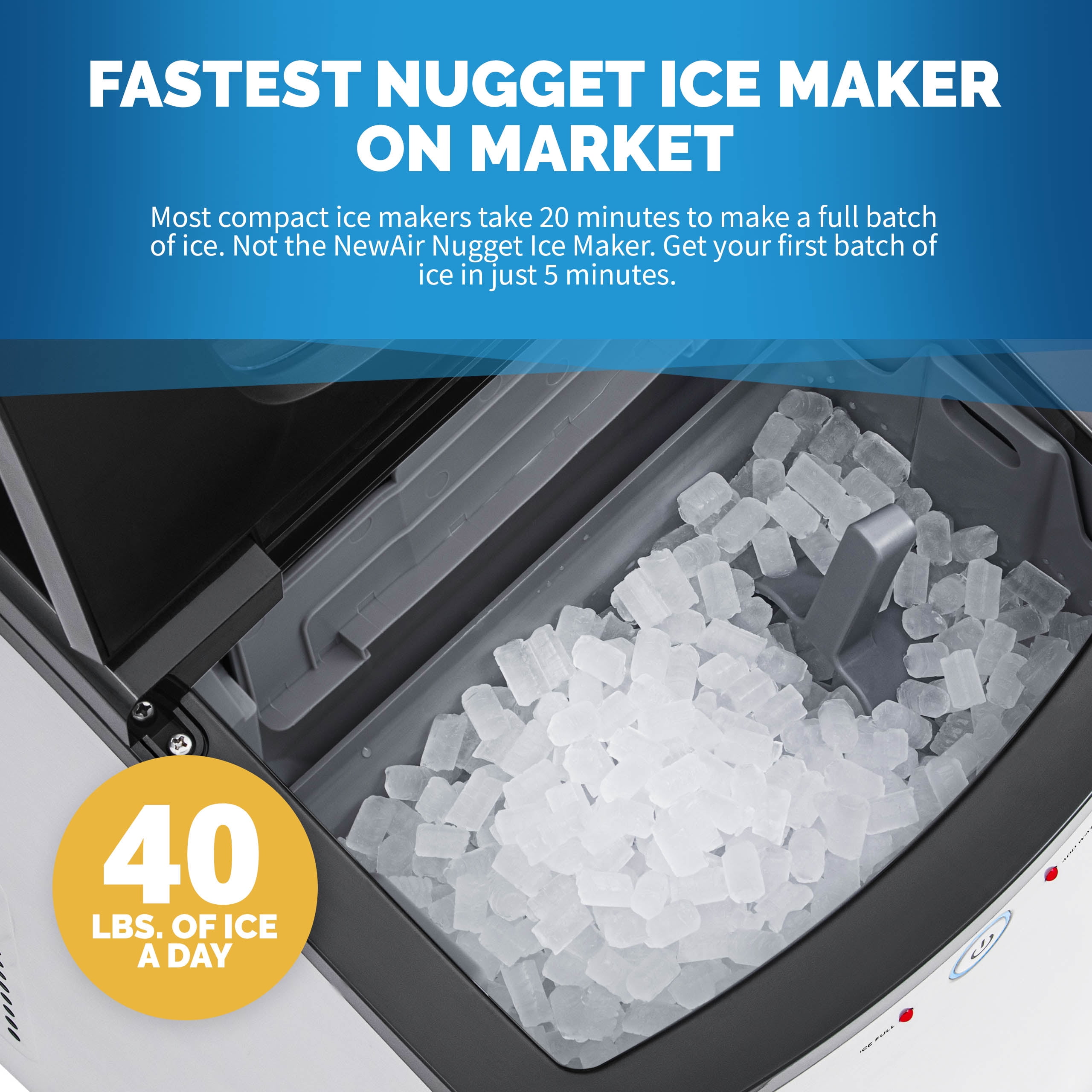 Quick cycle time enjoy fresh ice in minutes with the newair ai 215ss portable ice maker.