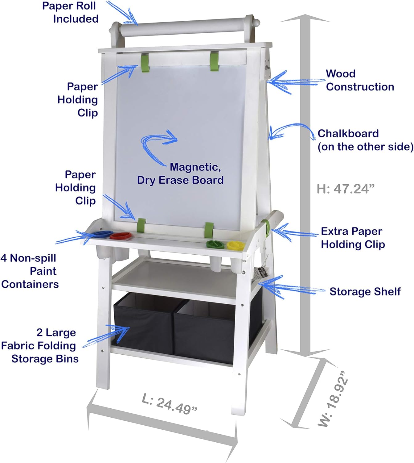 Ikea blue children s blackboard whiteboard paper roll this is a great basic child sized easel with a white board and a chalkboard side perfect for two kids to share or for working on a couple of different art projects without having to put one away.