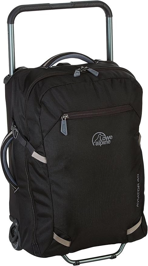 The gt roll on by lowe alpine is cabin compatible and features a wide handle rugged wheels and expandable volume.